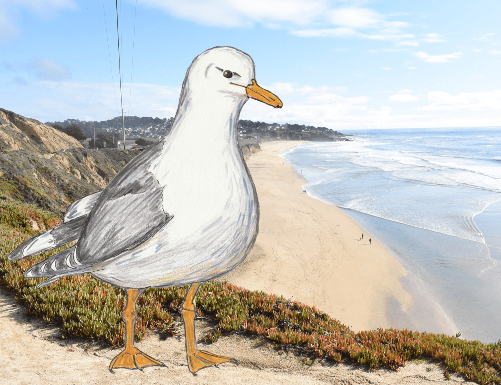 One day Sammy was minding his own business. Like always, he was flying around Montara Beach watching for yummy snacks. Swooping down, he ripped open a large lunch bag. It held a bunch of trash and some old sourdough bread. Sammy loves fresh bread, so he started pulling out the garbage with his beak. Half drunk soda cans, wet sandwich bags, and a dirty diaper. At last, he almost reached the soft bread. Right as he was about to take a bite of it, he got his head stuck in plastic soda packaging. Sammy couldn’t get loose. The more he tried to get out, the more stuck he became. Poor Sammy.
