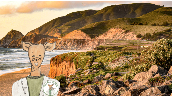 You can usually find Dr. Coyote wandering around the beaches and open space near his home every morning and evening. He is searching for lost or hurt animals. Most coyotes would rather eat them for quick snacks but not Dr. Coyote. When he carefully picks up animals he takes them to his lab.