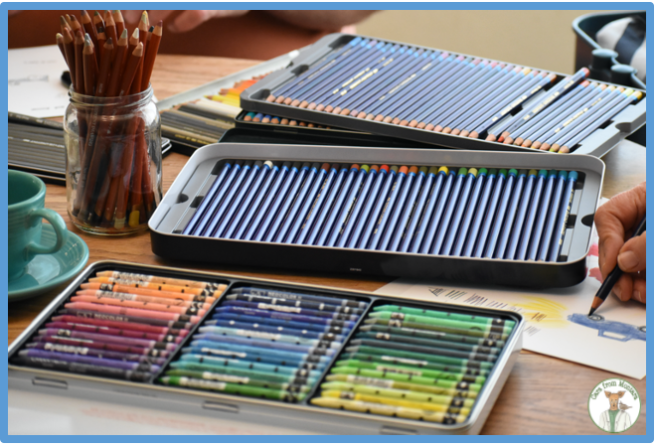 Art supplies have been a central theme in my life. I cannot remember when I didn’t have them in my purse, stuffed in my cupboards, and all over my desk. When my baby daughter could finally sit up in her highchair, I put a marker in her chubby hand. I was thrilled when she made her first mark. It was just as amazing to me as her first step.